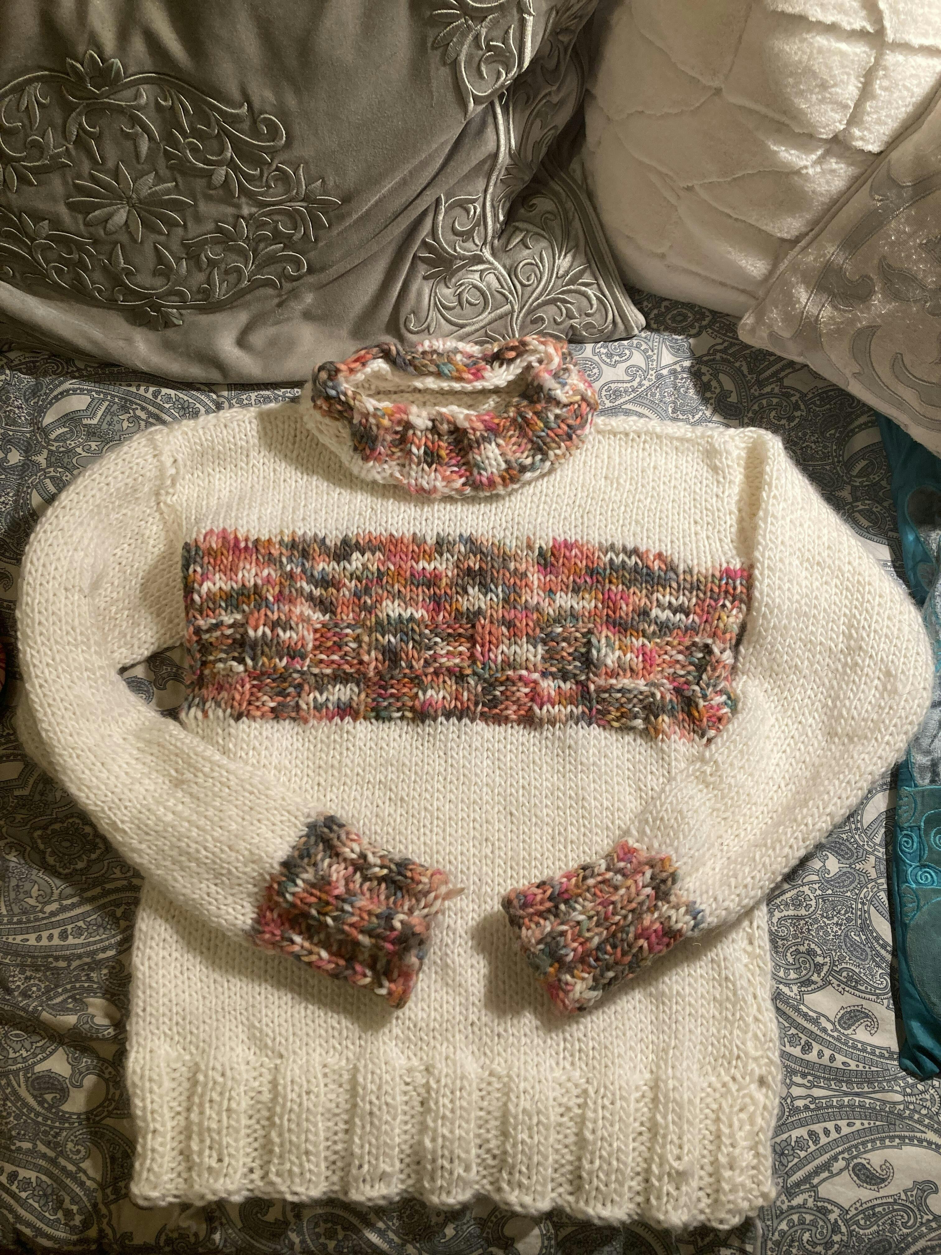Very beautiful sweater and easy to knit. Instructions were also very easy to follow.