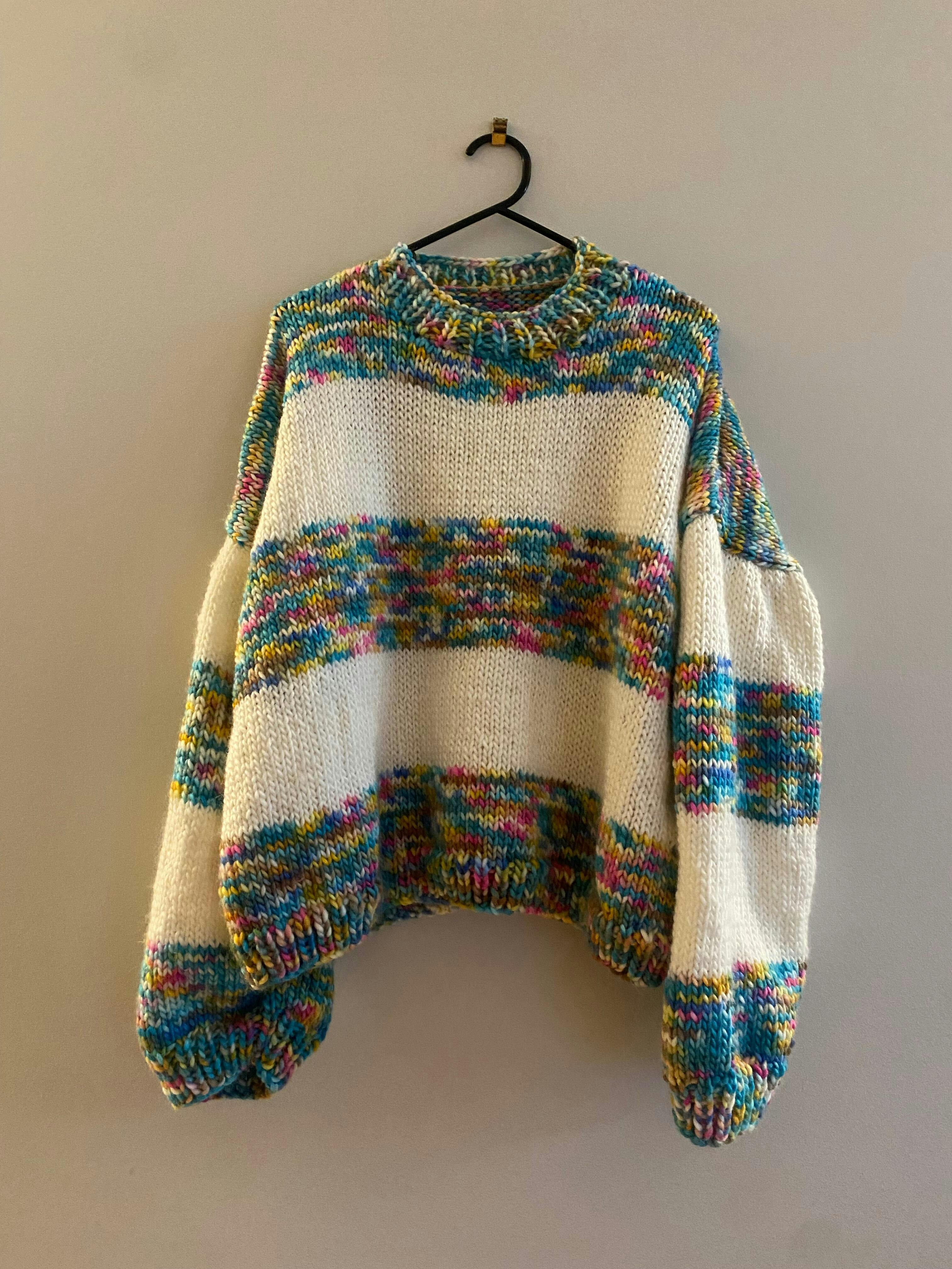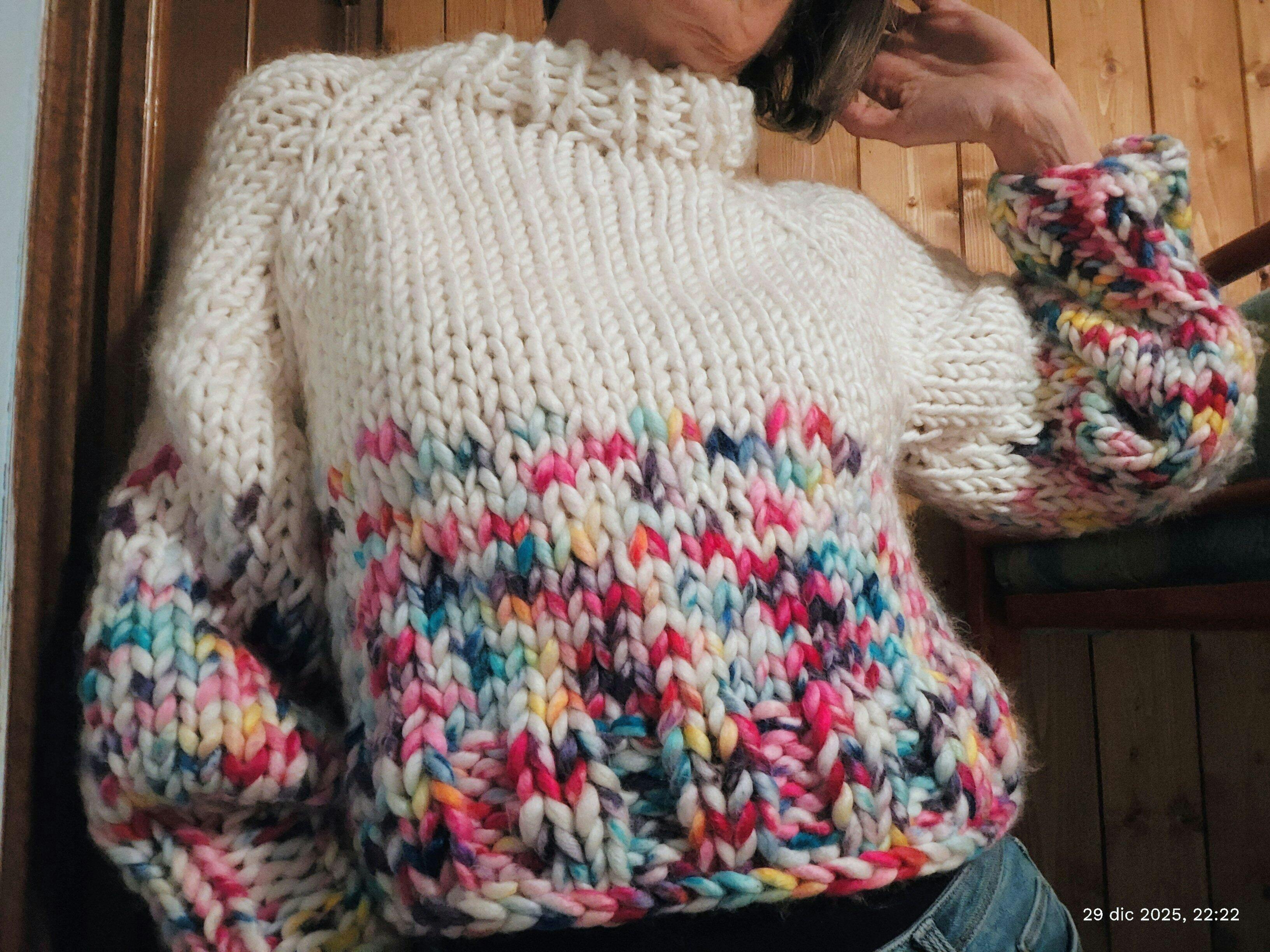 Non avevo mai usato i ferri circolari ma con le istruzioni e i video è stato facilissimo confezionare il maglione.