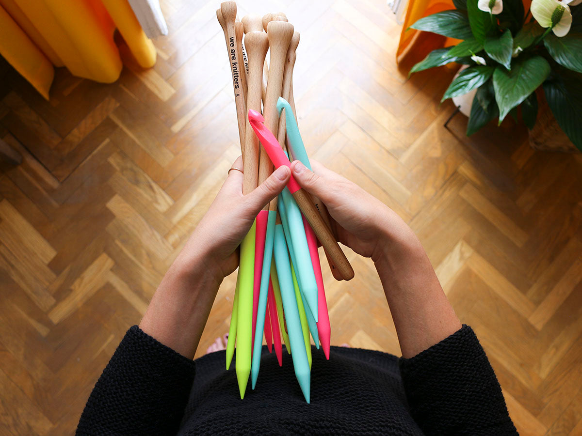 Usually yarn labels indicate the recommended needle size for each type of fiber. This size refers to the thickness or diameter of the needle or hook, not its length. Needles can come in different lengths, and even circular needles can have different cable lengths which can help us knit a variety of projects. There are also different types of sizing system used to classify the needles by their thickness. In Europe, the size is given in millimeters. In the United States, the size is a number between 0 and 50. Then in the United Kingdom and Canada, size is a number between 18 and 000. For this reason, we've created two charts to help you choose the right knitting needles or crochet hooks for your next project!